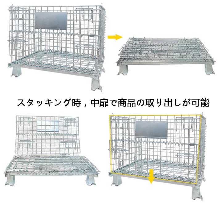 折りたたみメッシュパレットは、収納量が一定で、きれいに積み重ねられる、一目でわかる収納、在庫のカウントがしやすいなどのメリットがあり、収納スペースの有効活用も図れます。 また、耐久性、運搬性、再利用性に優れているため、保管会社の人件費と梱包費を効果的に削減することができます。 工場の現場だけでなく、スーパーマーケットでの陳列促進や保管にも活用できる。 改造したケージは、棚や組み立てラインに置いたり、積み重ねたりすることができます。キャスター付きのケージは、作業場で簡単かつ迅速に回転させることができ、PVCや鉄板付きのケージは小さな破片がまぎれ込むのを防ぎます。